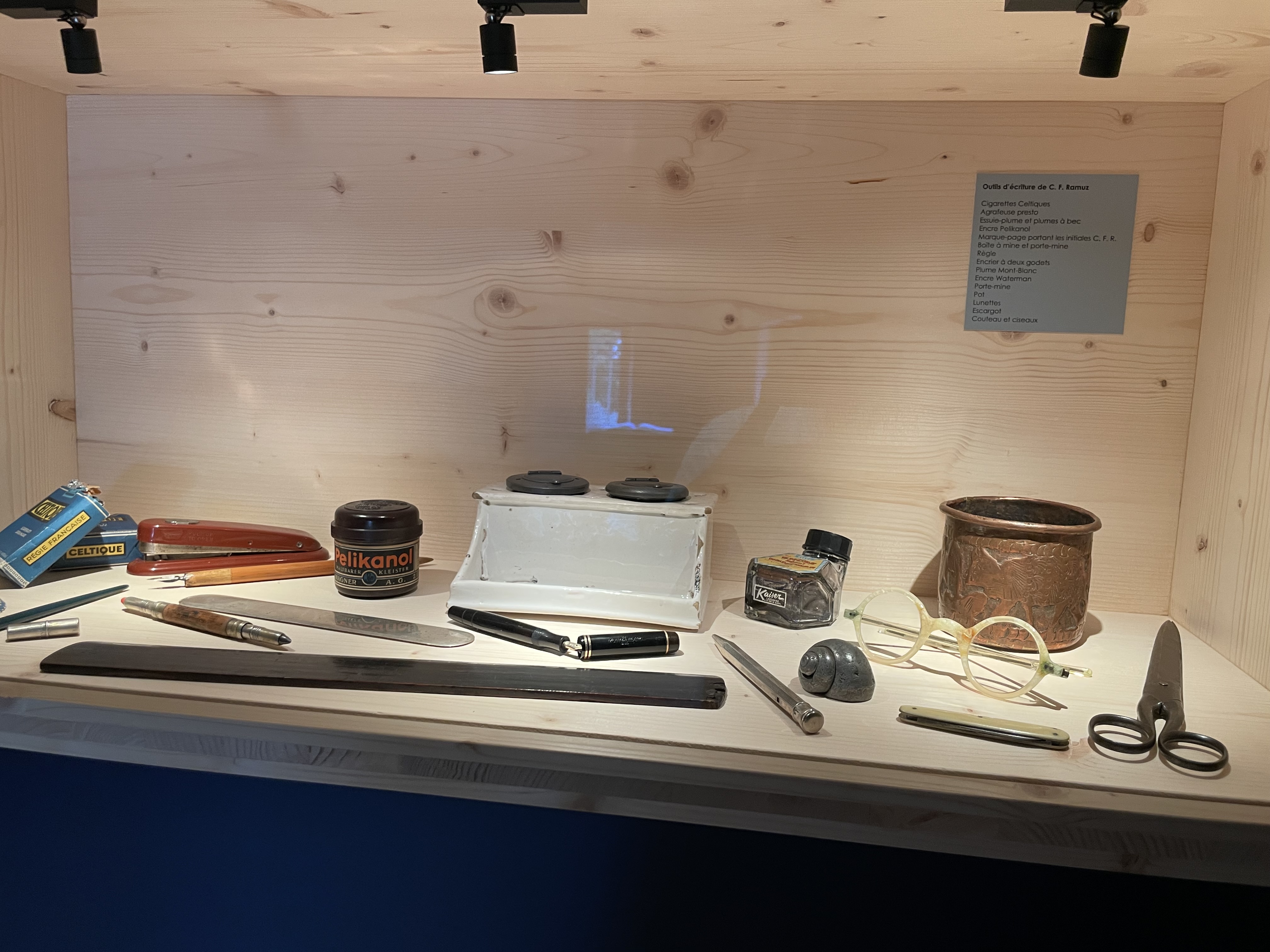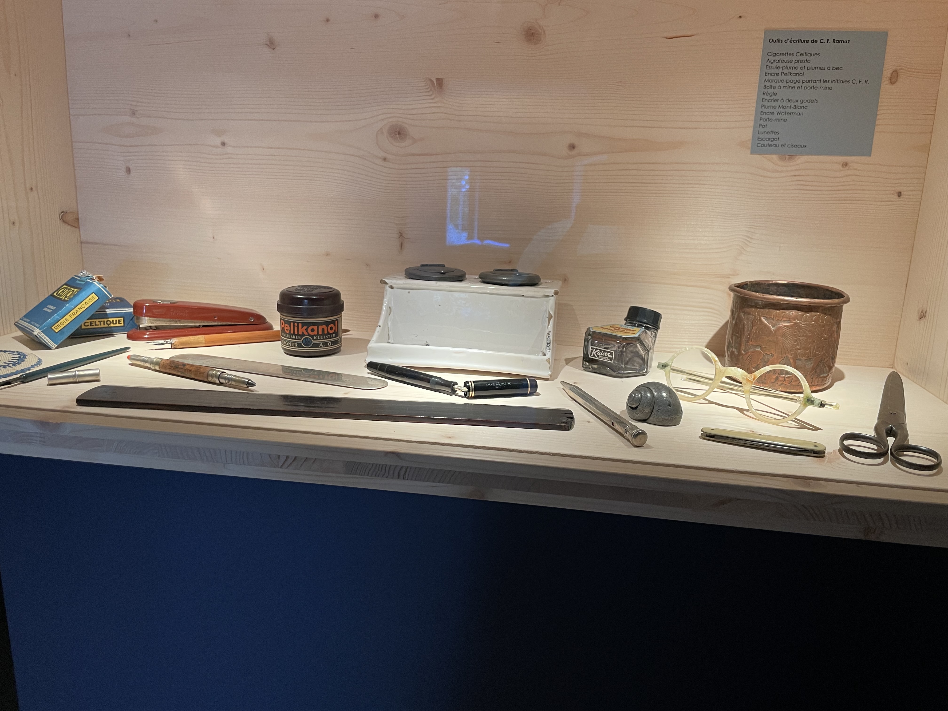 Das Haus liegt oben am Hand im alten Dorfkern Pullys, es ist schmal und rosa zwischen andere Häuser gedrückt. Es dient immer noch als Wohnhaus, aber Erdgeschoss und ein Teil des ersten Stocks sind zu einem Erinnerungshaus umgebaut. Das Museum ist sehr schlicht mit hellem Fichtenholz gestaltet, eine ausführliche Audioführung führt über verschiedene Stationen in Ramuz’ Schreibprozess und -welten ein, eine ganze Vitrine ist seiner Grossvaterliebe zu „Monsieur Paul“, seinem Enkel, gewidmet. In seinem Schreibzimmer steht ein riesiger Schreibtisch, der einen Blick auf die beiden niedrigen, vergitterten Fenster bietet, die auf einen terrassierten Garten hinausgehen, der wiederum hoch über dem See schwebt. Im Rücken des Schreibtischs eine ausgelegene Couch und an der Wand ein kleiner Ofen (gerade richtig zum Verbrennen von beschriebenem Papier).